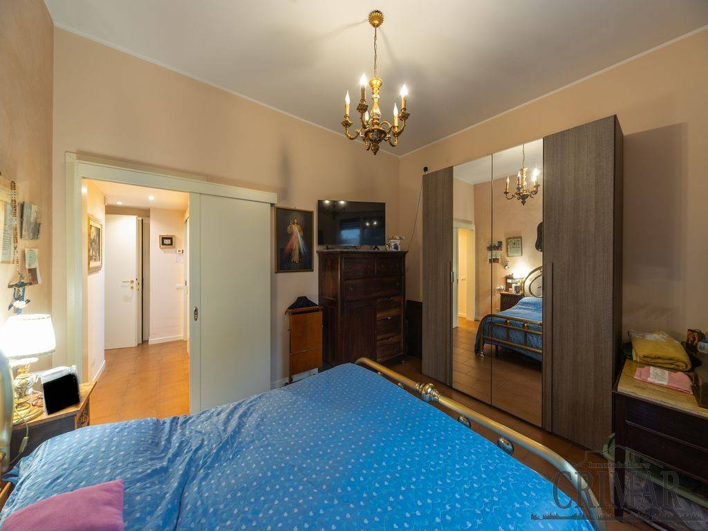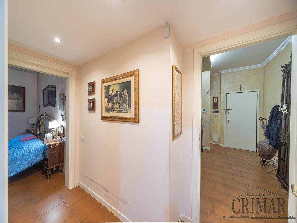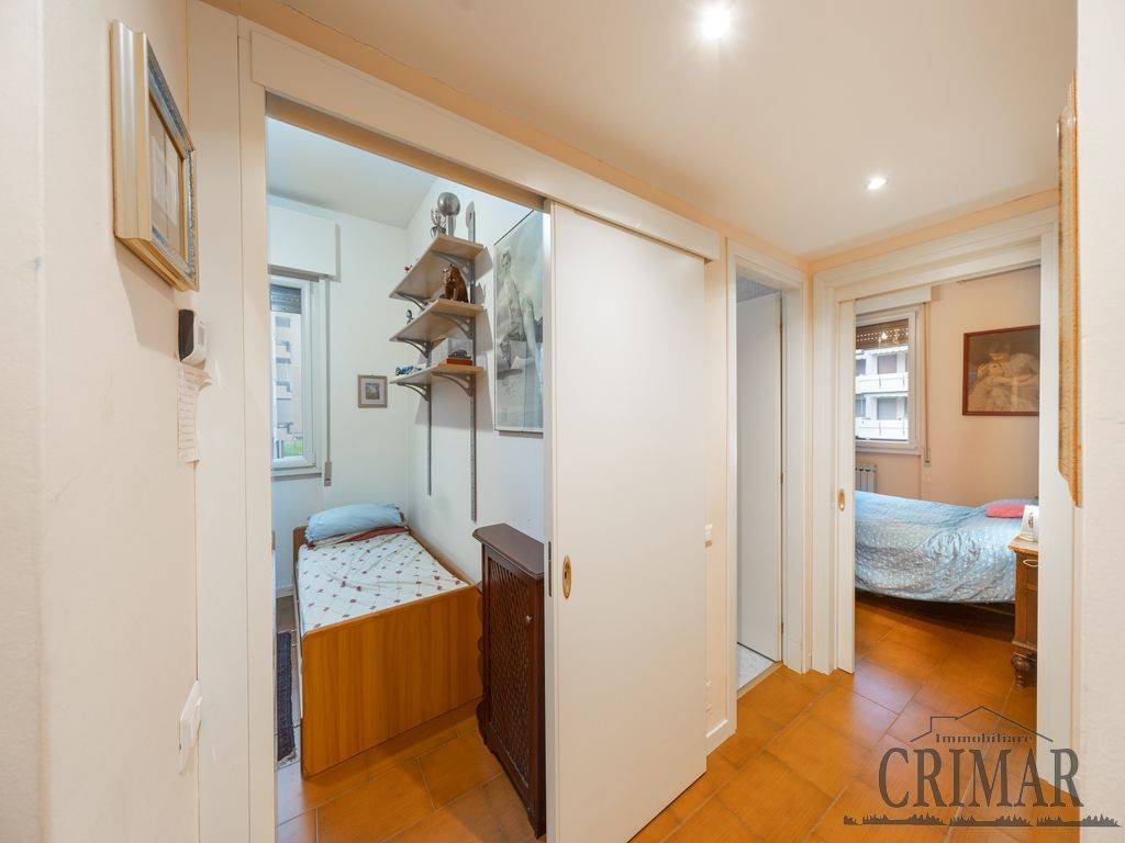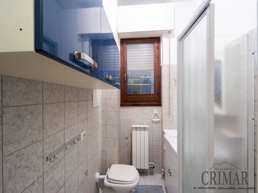 L'immobile risulta così composto: ingresso su ampio soggiorno che consente l'uscita sul terrazzo, successivamente troviamo il primo bagno di servizio finestrato con doccia, la cucina abitabile con un'altra uscita su balcone; il corridoio, soppalcato e dotato di pratico ripostiglio, conduce poi alla zona notte dove troviamo la cameretta, un secondo bagno finestrato con vasca e un'ampia camera matrimoniale.