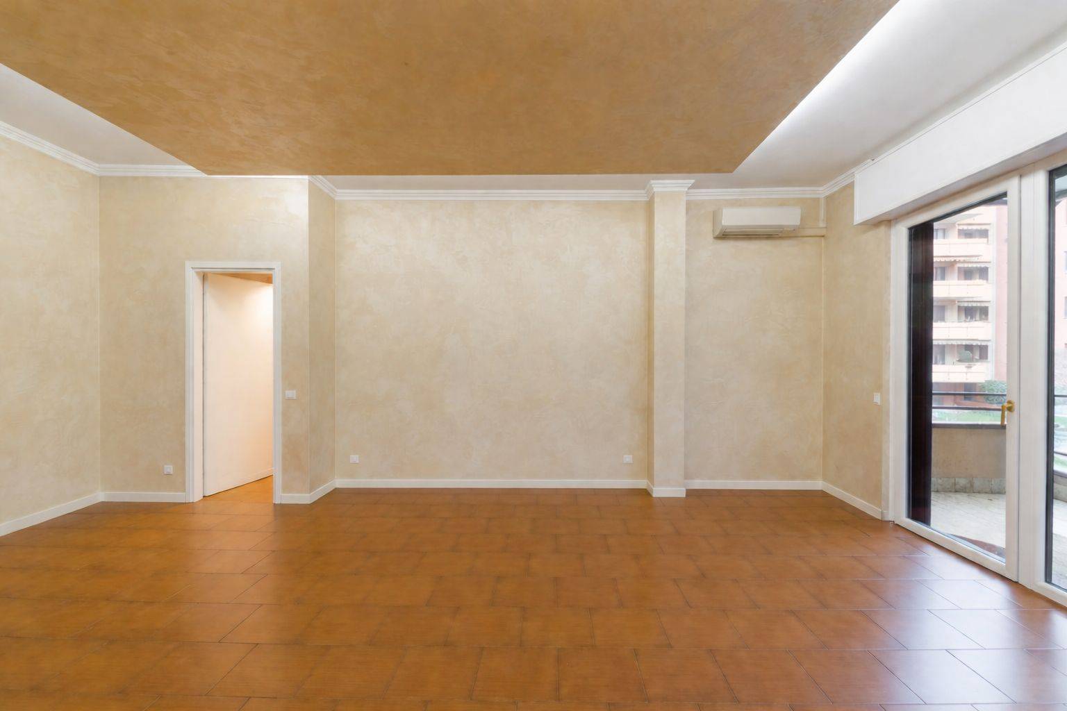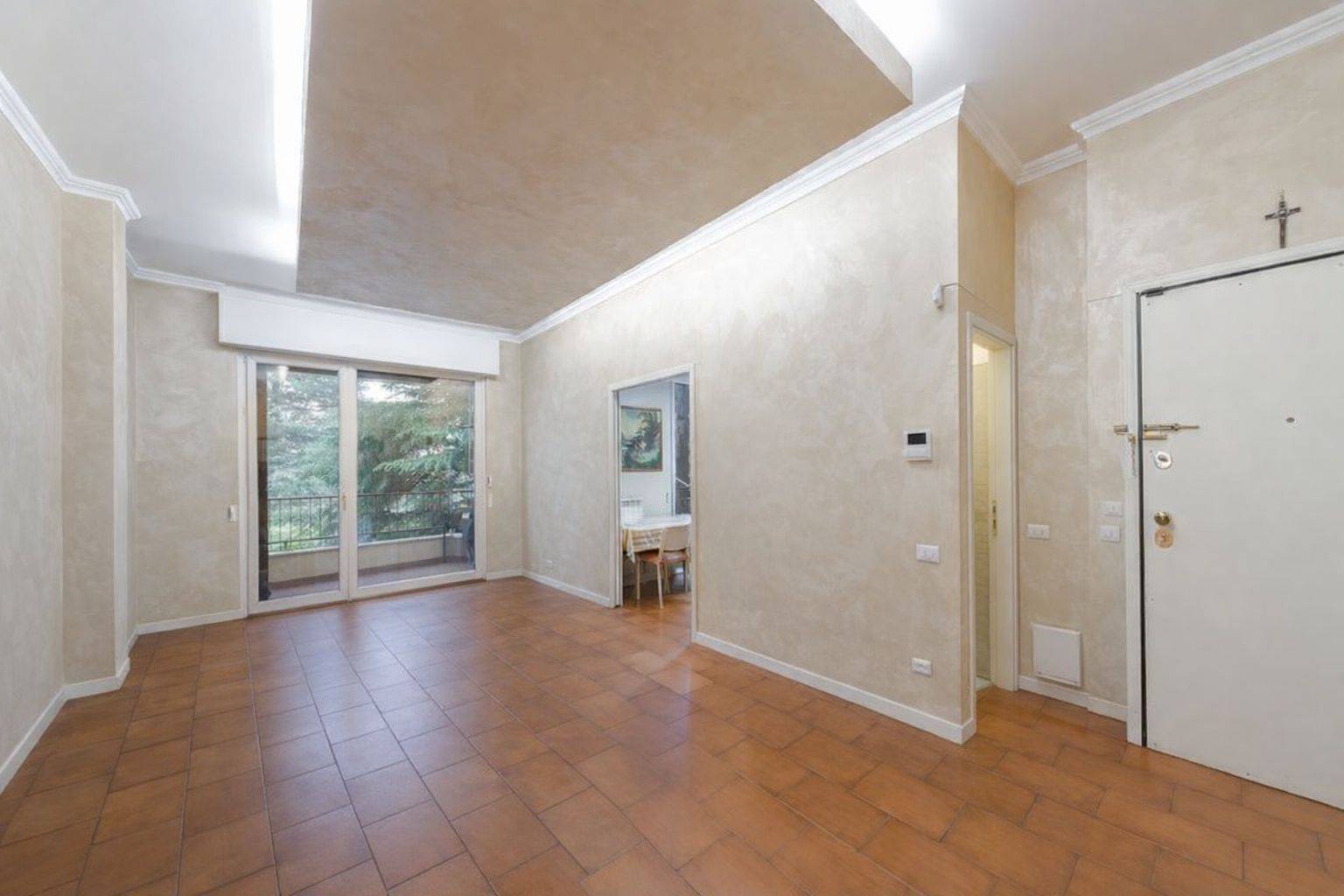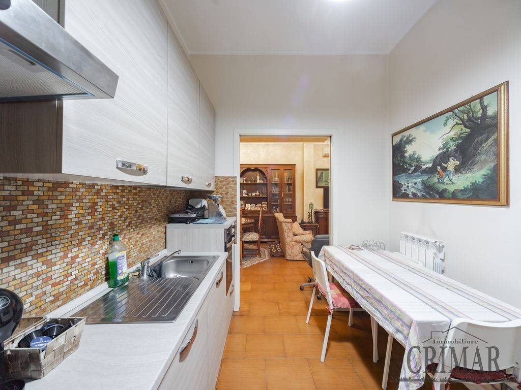 L'immobile risulta così composto: ingresso su ampio soggiorno che consente l'uscita sul terrazzo, successivamente troviamo il primo bagno di servizio finestrato con doccia, la cucina abitabile con un'altra uscita su balcone; il corridoio, soppalcato e dotato di pratico ripostiglio, conduce poi alla zona notte dove troviamo la cameretta, un secondo bagno finestrato con vasca e un'ampia camera matrimoniale.